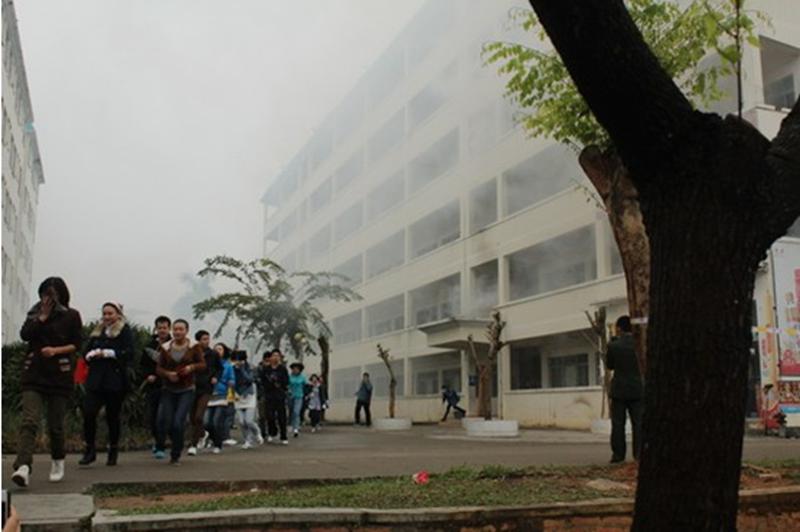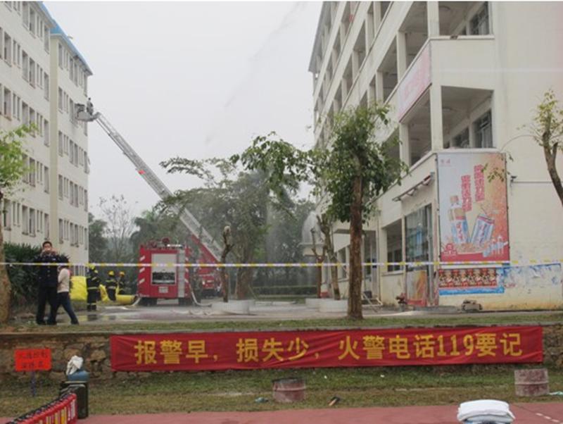 为深入贯彻落实上级安全生产的部署和要求,增强广大师生员工的消防安全意识和提高大家应对突发事件的技能,2012年12月23日下午儋州校区隆重举行了消防宣传教育和安全演练活动,本次活动由儋州市消防局指导,校区保卫办与应用科技学院(儋州校区)联合主办,儋州市消防局张小虎中尉、应用科技学院廖建和院长、管委会符灶儒副主任、应用科技学院冯社洪副书记、保卫处梁仲友副处长、保卫处陈楠昕副处长及热科院试验场党委沈海龙副书记。整个演练展现出了一场惊心动魄的灭火抢险战斗的场景,各参演单位人员都经受了一次水与火的考验,广大师生员工深受教育。活动分几个环节进行: