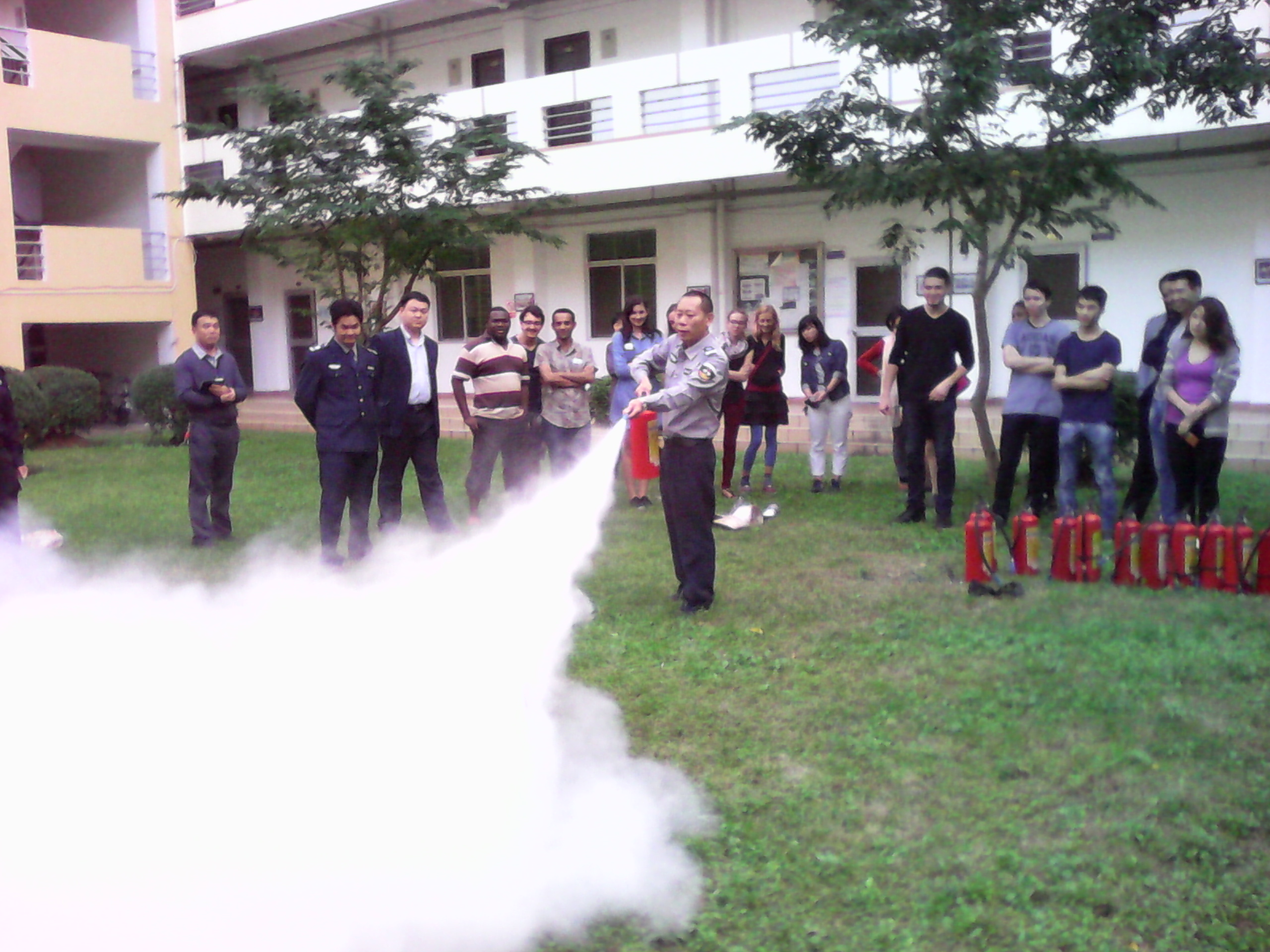 校保卫处苏文魁副处长就消防的重要性、如何加强宿舍火灾预防、如何正确灭火等方面讲解了消防安全知识,王琼辉副科长从校园各种常见治安案件着手,就校园治安防范措施以及如何加强自身的安全防范进行了讲解。讲座结束后,所有参加讲座的留学生还参加了消防演练,通过讲解和现场体验,帮助他们学会了如何正确使用灭火器。留学生全员参与,积极性很高,讲座和演练现场严肃、活跃。