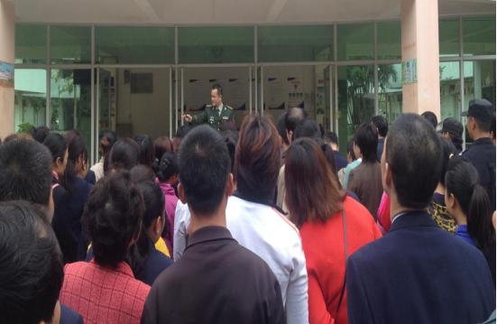 2016年1月10日上午保卫处和后勤集团在学生区举行今冬明春校园消防安全演练活动,学校邀请了海口市公安消防支队的官兵进行现场指导,开展消防安全知识讲演,并在8号学生公寓楼举行消防安全演练,实战操作灭火器、消防水带灭火、学生安全疏散逃生等科目演练。保卫处义务消防队员和后勤集团学生宿舍楼管员共110名参加了消防安全演练活动。