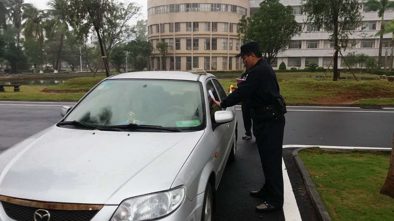 本学期保卫处对校卫队员进行第三期的警务技能培训,规范门岗管理,做到“开关有时、疏堵有方”。对教职工车辆录入门禁系统,通过车牌识别快速通行,尽量方便教职工进出校门;对校外车辆进出校园进行检查,特别对运货车、工程车等车辆进行盘查、登记;对可疑人员进出校门从严检查登记,大大减少外来车辆穿行校园和校外无关人员进入校园。教职工车辆和来校办事的外来车辆绝大部分依规停放在停车场和临时停车位,但也有少部分车辆在校园内乱停乱放,保卫处巡逻队及时制止、纠正,不听劝告乱停放的给予贴单。多次违规停放者列入校园不受欢迎的“黑名单”,坚决拒绝其再进入校园。通过严管严控,校园秩序得到极大改善,安全隐患和治安环境得到净化,校园面貌焕然一新。