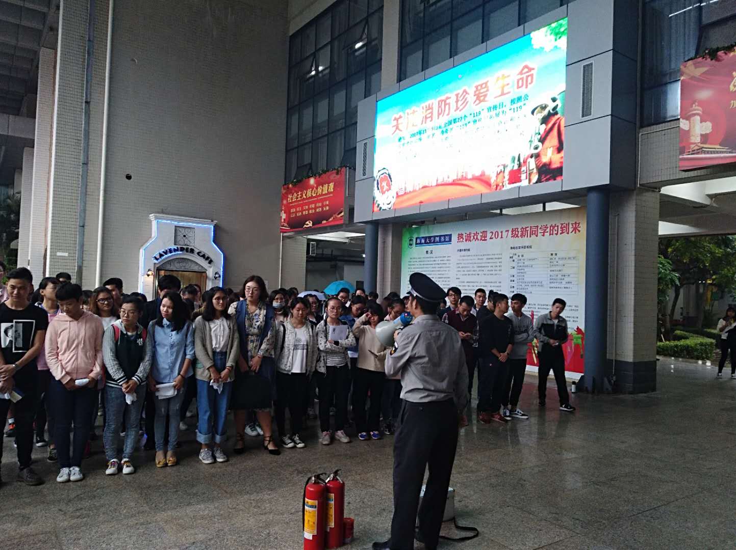 本年度“119”消防宣传月活动主题为“关注消防、平安你我”,结合这一主题,学校宣传部、保卫处、学工处等职能部门通过宣传栏、LED显示屏、广播站、校园网、消防演练等多渠道、多形式的开展消防安全知识宣传,积极营造校园消防安全氛围,在全校掀起“关注消防、平安你我”的高潮。//www.hainanu.edu.cn