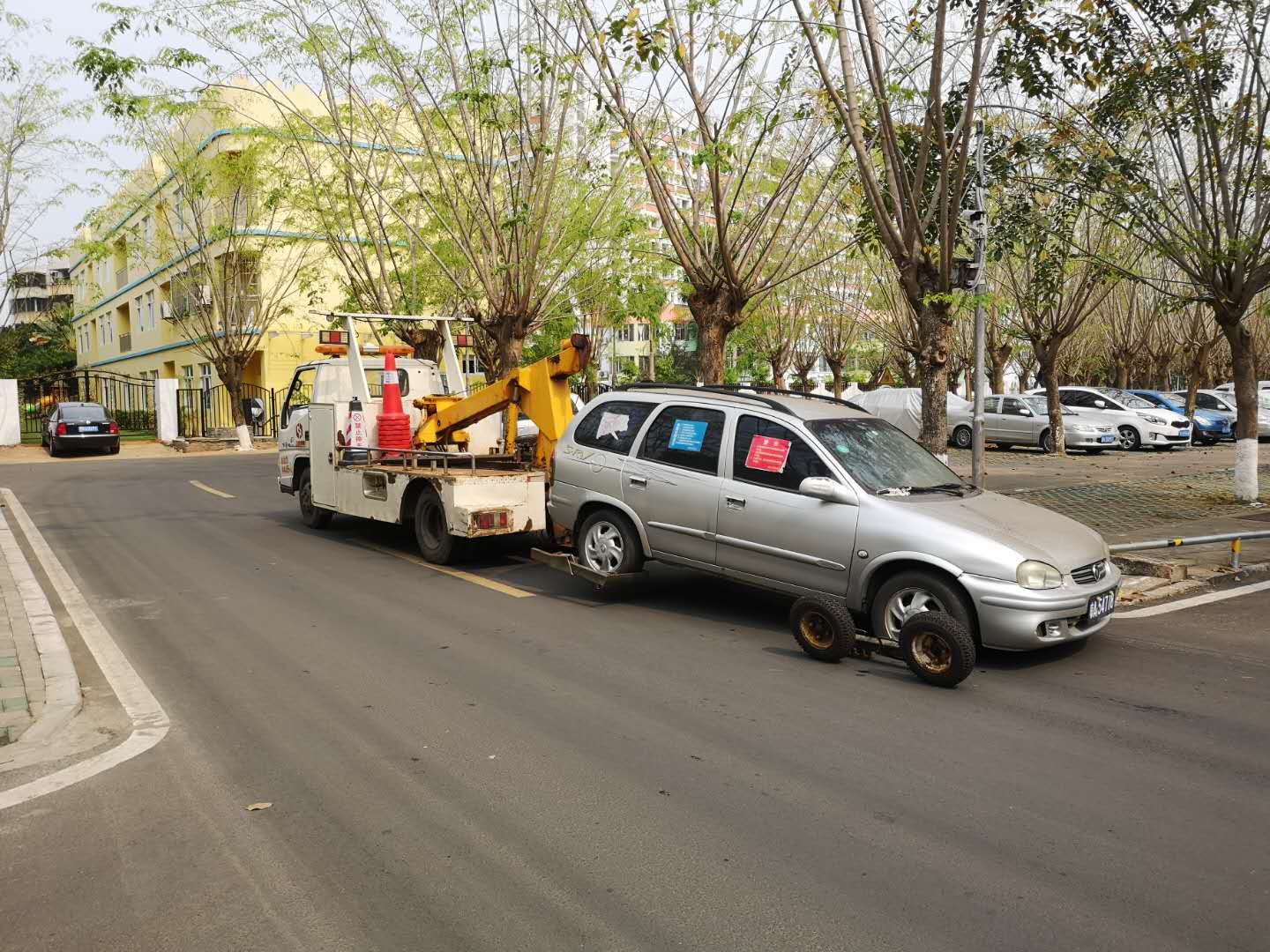 为进一步加强校园车辆管理,规范校园停车秩序,优化校园环境,保证良好的校园秩序,依据《中华人民共和国消防法》、《中华人民共和国道路交通安全法》和《PA官方网站海甸校区交通管理暂行办法》,保卫处开展了校园“僵尸车”清理行动。