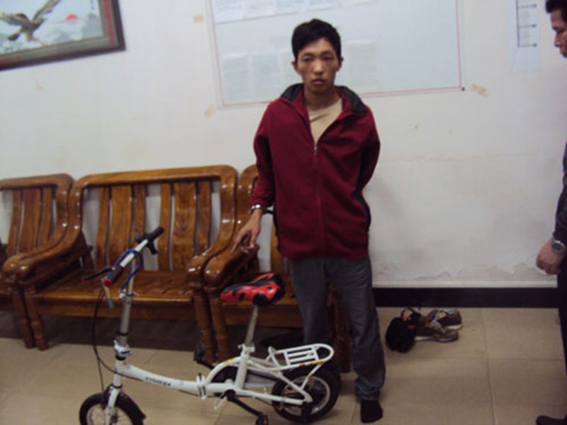 2010年3月27日晚9时30分,正在图书馆学习的张同学发现自己停放在自习室窗口边的自行车不见了,马上向图书馆值班的校卫队员报案,我处值班室接到图书馆值班员的报告后,立即用对讲机向各值班岗位通报了嫌疑人和被盗自行车的特征,顿时校园各守护岗位全部动起来了,巡逻的保卫人员开车在校园内巡查、各门岗也开始盘查重点人员。当盗窃嫌疑人刘宝林(男、海南儋州人)骑着他的“猎物”准备出南门时,被警惕的校卫队员当场抓获。