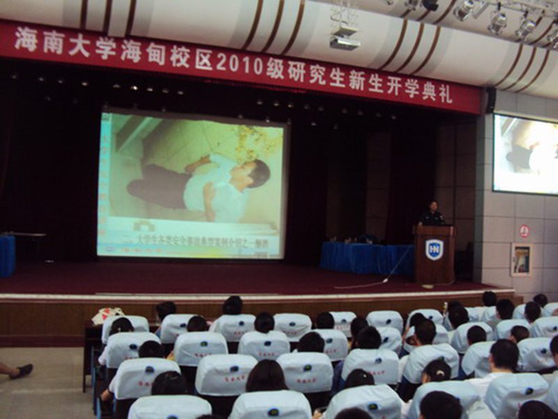 2010年9月3日下午,我校保卫处黄海宁处长在2010年研究生开学典礼上,对今年新入学的研究生进行了安全教育。