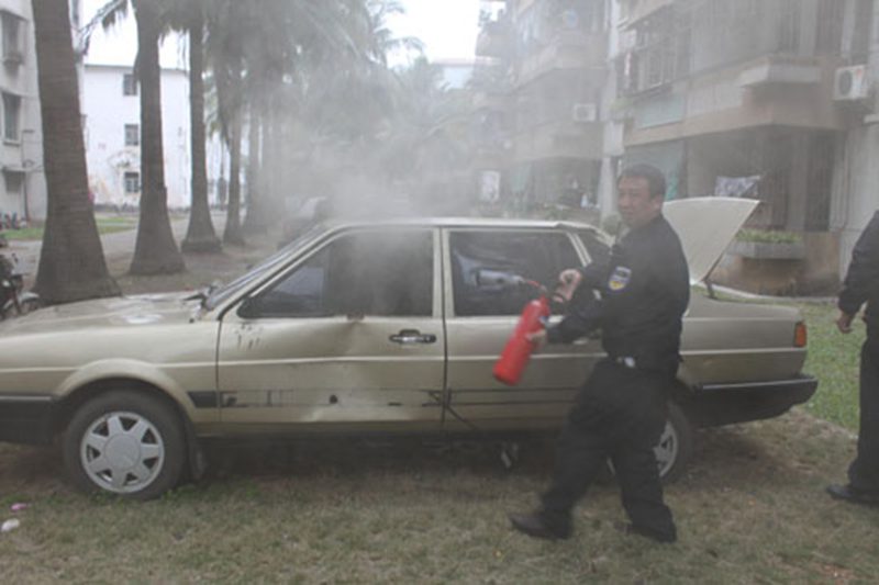 2011年2月1日(年二十九)上午11时32分,我处值班室接群众报警称,在海甸校区教工宿舍区63栋前一辆废旧汽车着火。接警后带班处领导立即组织在教工区和教学区巡逻的8名民警携带6具灭火器赶到现场处置,到现场时发现火源在车内,并且火势有加大的趋势,执勤民警迅速砸开车窗使用灭火器灭火,经过短暂的较量,火被扑灭。