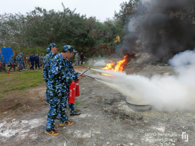 为了顺利开展此次培训,我处特邀美兰消防中队来我校进行培训指导。本次演练分为两个阶段:第一阶段为消防员为我校师生演示水枪、灭火器、灭火毯、防毒面具和消防服等消防器材的使用方式及注意事项。第二阶段是我校参训师生使用不同灭火器材进行灭火体验。