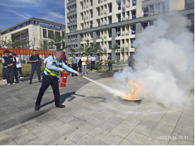 疏散集结完毕后,保卫处专业人员紧接着进行了灭火器实操教学。工作人员现场详细讲解并演示了干粉灭火器的“提、拔、握、压”四字使用口诀及初期火灾扑救的关键要点。在专业人员的悉心指导下,师生们踊跃参与,分组进行了灭火器实际操作,亲身体验了扑救初起火灾的过程,有效强化了对消防器材的使用技能和初期火灾应对能力。