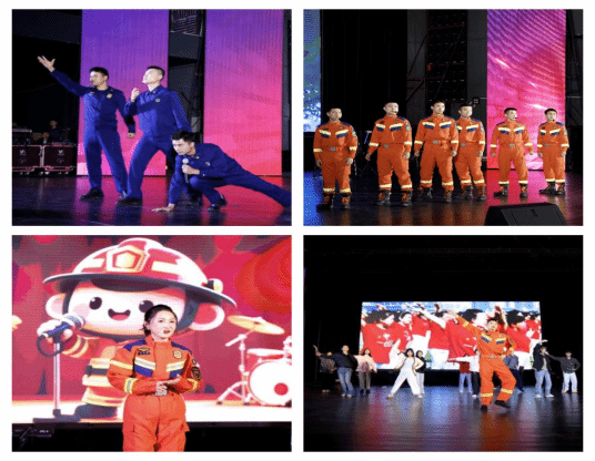 整场晚会紧密围绕“全民消防 生命至上”主题,巧妙地将消防安全知识融入文艺表演之中。海口市秀英区消防救援大队的特色文化品牌“蓝乐队”倾情献唱,《致敬逆行者》、《忠诚卫士》等歌曲深情讴歌了消防救援人员逆行向险、守护人民生命财产安全的崇高精神,一曲引发全场共鸣的《孤勇者》更是将气氛推向高潮。晚会节目形式多样,嘹亮的歌声、幽默且贴近生活的小品,在寓教于乐中系统普及了火场逃生自救、防踩踏、防护面具使用等实用技能,生动演绎了消防救援一线的感人故事。