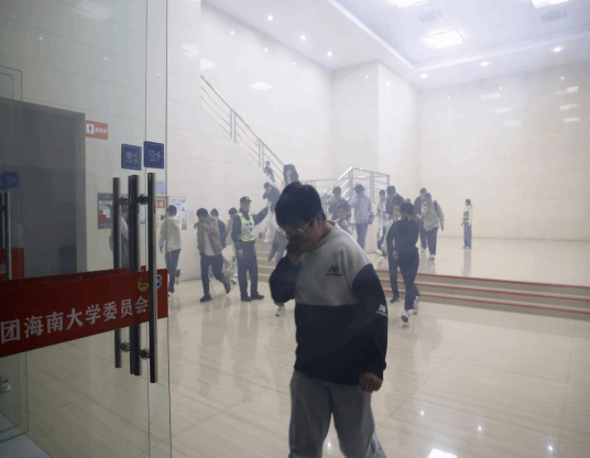 理论需结合实践,知识需付诸行动。晚会的尾声,一场模拟真实火情的应急疏散演练将活动推向另一个关键环节。随着模拟火灾警报响起,现场工作人员迅速就位,冷静、专业地引导师生疏散。参与演练的师生们沉着冷静,严格按照刚刚学习掌握的逃生技巧,弯腰低姿、用湿毛巾捂住口鼻,沿着指定疏散路线快速、有序撤离。整个过程紧张而不慌乱,仅用时3分钟,所有人员便安全撤离思源学堂,圆满完成了演练任务,切实检验和巩固了晚会的宣传教育成效。
