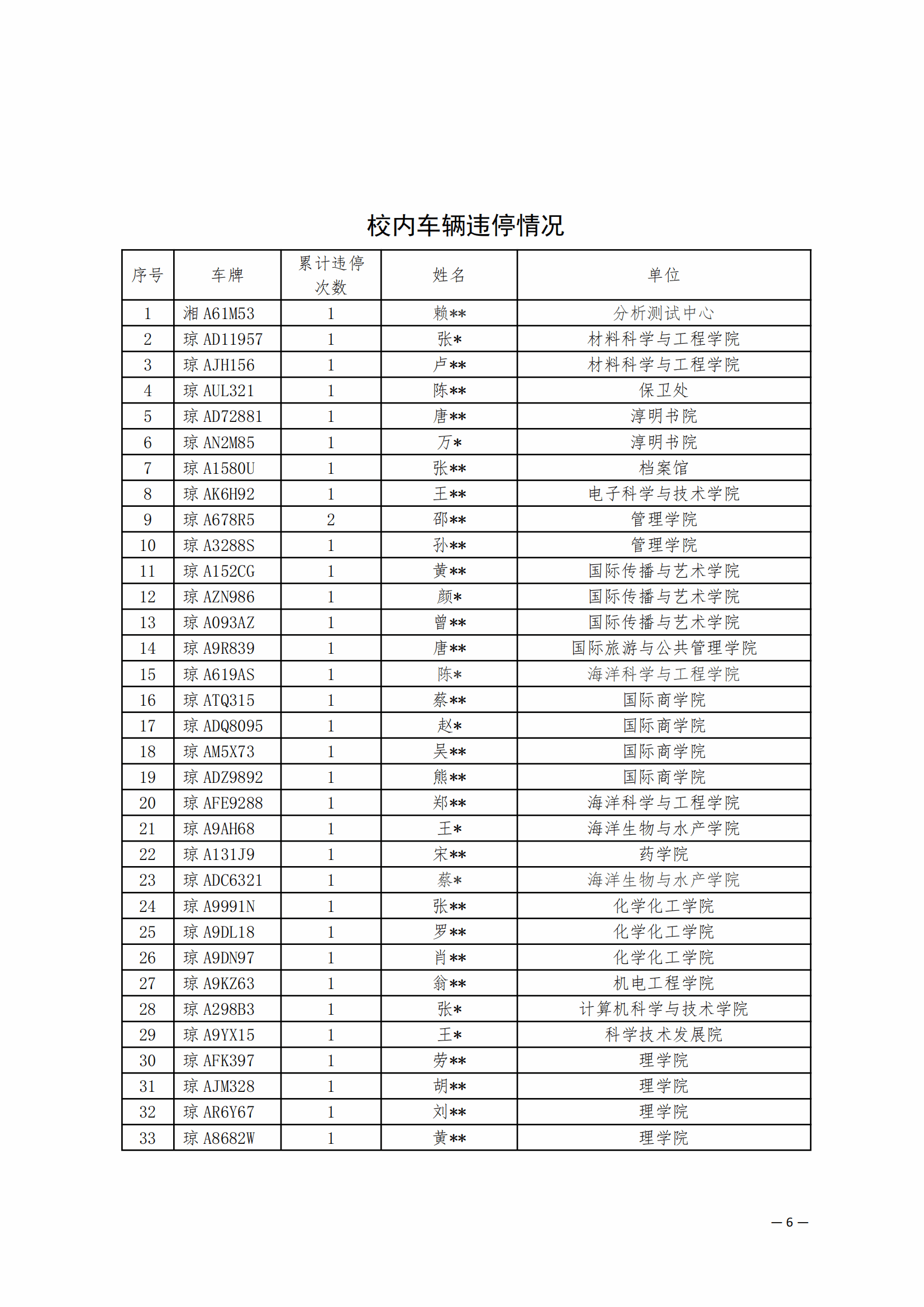 为扎实抓好《PA官方网站校园安全与秩序管理规定(试行)》的落实,学校持续加大校园交通安全整治力度。现将11月份校园交通安全整治情况通报如下: