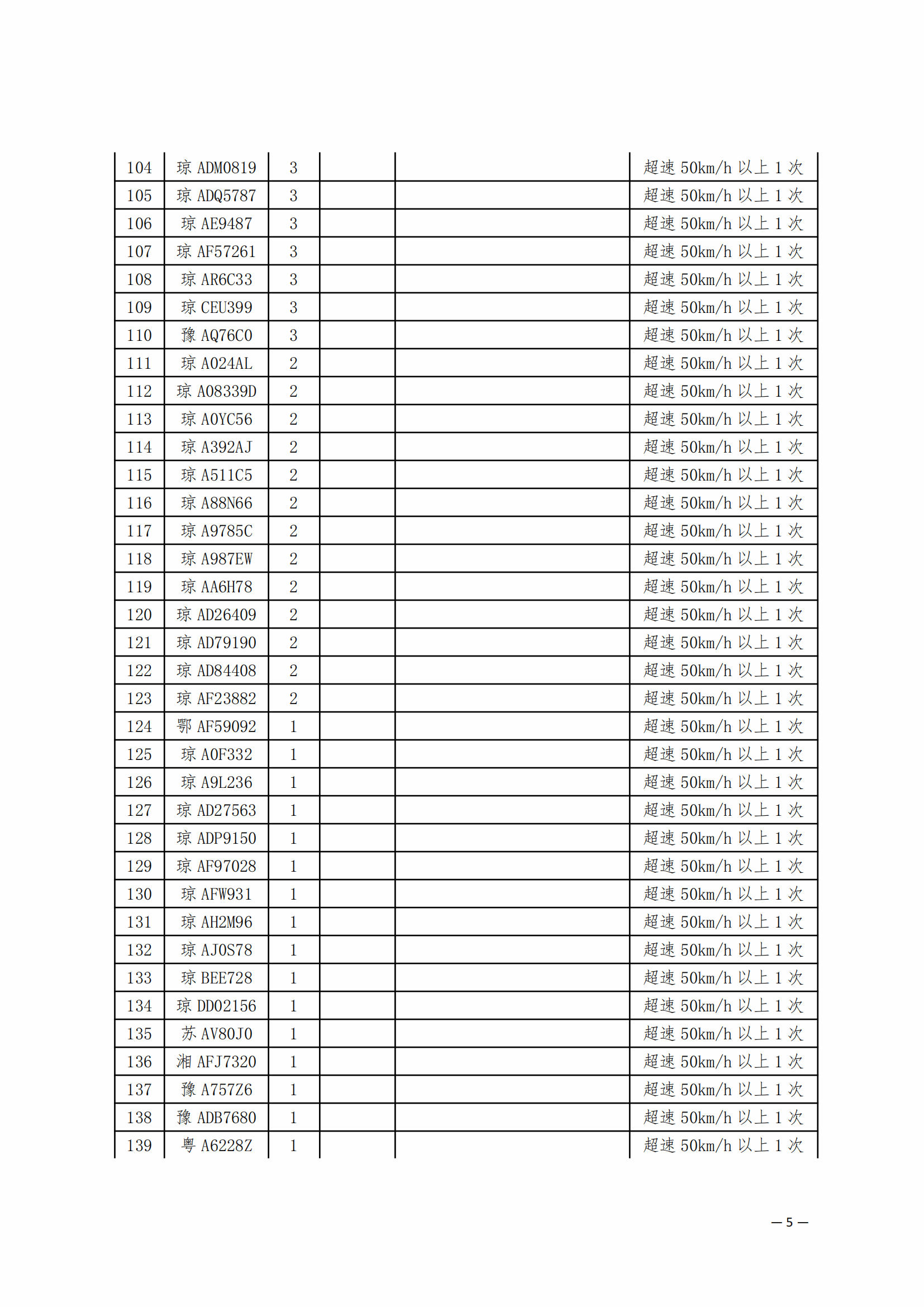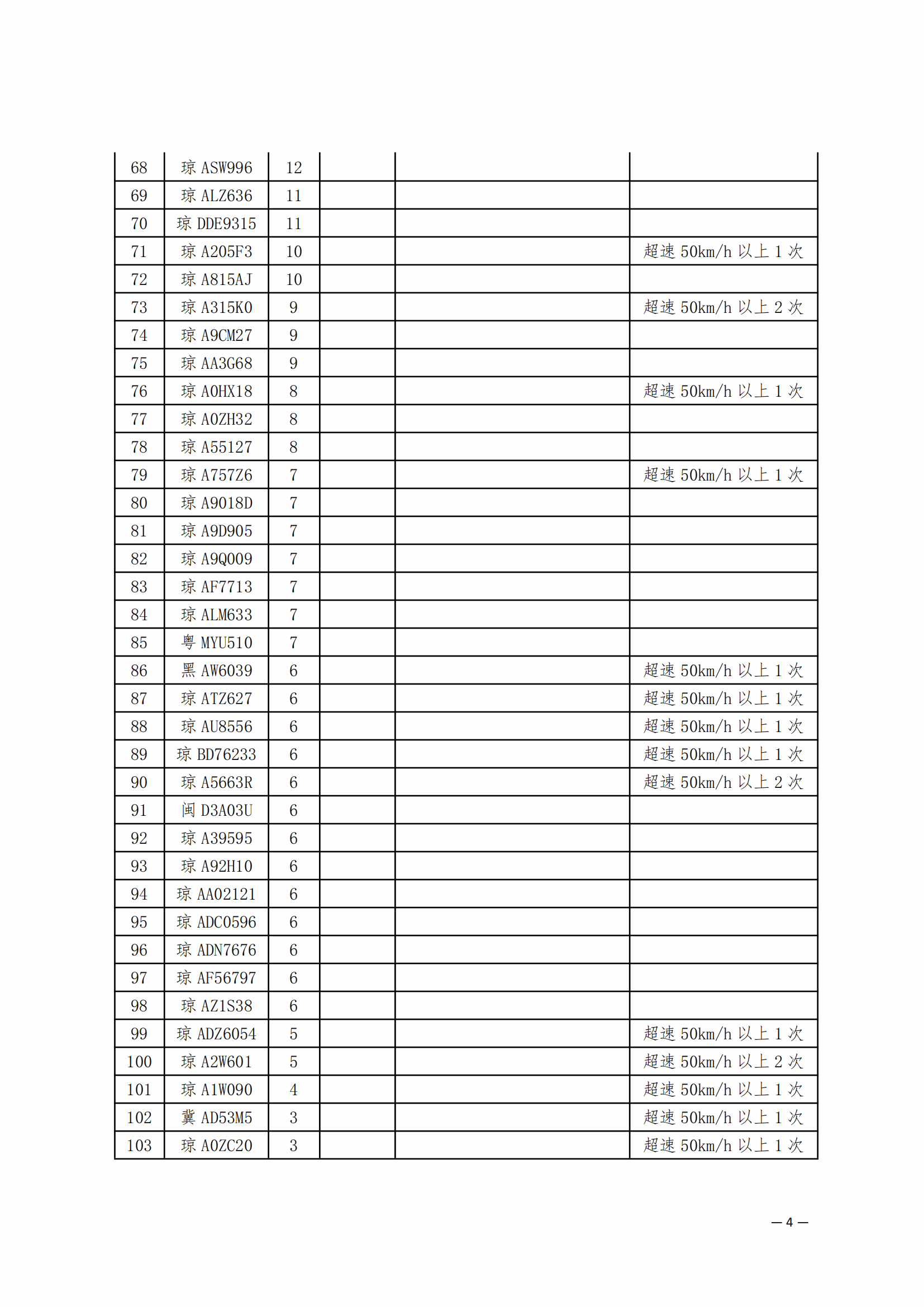 后附各项违规车辆清单。
