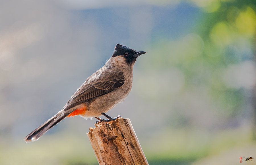白喉红臀鹎是雀形目鹎科鹎属鸟类,长18-23厘米,体重28-52克,头顶有黑色光泽立羽,喉部白色与黑色头部形成鲜明对比,尾下覆血红色尾羽,为国家“三有”野生动物。