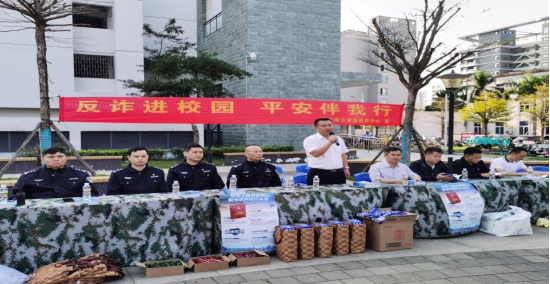 为进一步增强师生防范电信网络诈骗风险意识,提高防控能力,2月12日,学校保卫处、学工部联合海口市公安局反诈中心钟昱教导员(四级高级警长)、海口市公安局政治部宣传科冯锦华、海口市公安局美兰分局反诈中心卢传兴、人民路派出所副所长肖庆生等单位在紫荆二宿舍前,组织开展“反诈进校园 平安伴我行”安全防范宣传活动。活动由学校保卫处朱荣平处长主持,海南省电视台新闻频道直播海南栏目组现场播报。
