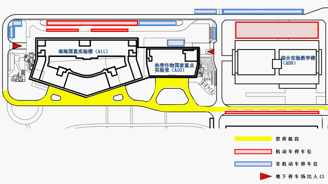 (一)热带作物国家重点实验室(A10)未划设停车位区域;